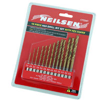 13pc HSS Titanium Coated Drill Set Sizes : 1.5 | 2.0 | 2.5 | 3 | 3.2 | 3.5 | 4.0 | 4.5 | 4.8 | 5.0 | 5.5 | 6.0 | 6.5mm with 1/4in. Hex Shank for use with Power Tools