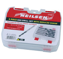 5pc HSS Drill Set Sizes : 10 | 11 | 12 | 13 | 15mm with 118 degree Point and Reduced Shank : 12.7mm Suitable for Metal / Plastic and Wood