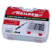 4pc HSS Drill Set Sizes : 14| 16 | 18 | 20mm with 118 degree Point and Reduced Shank : 12.7mm Suitable for Metal / Plastic and Wood