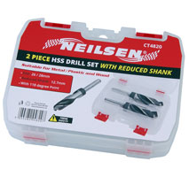 2pc HSS Drill Set Sizes : 26 | 28mm with 118 degree Point and Reduced Shank : 12.7mm Suitable for Metal / Plastic and Wood
